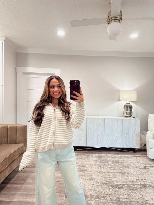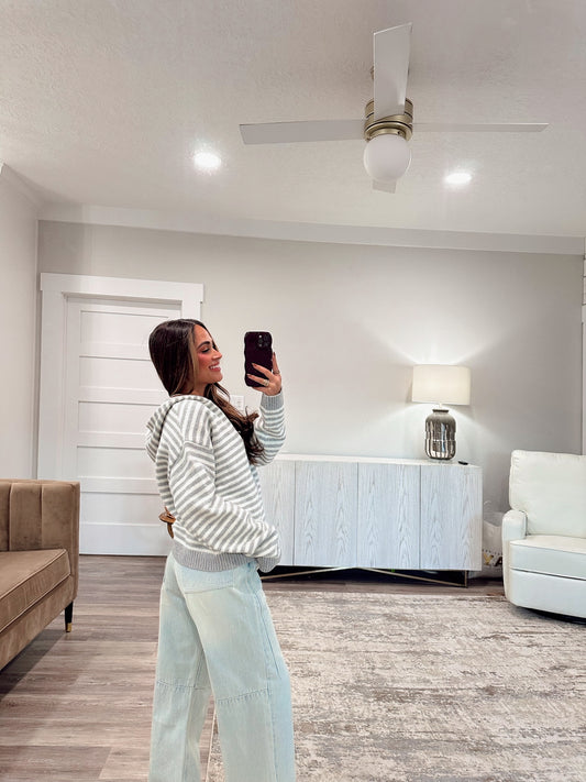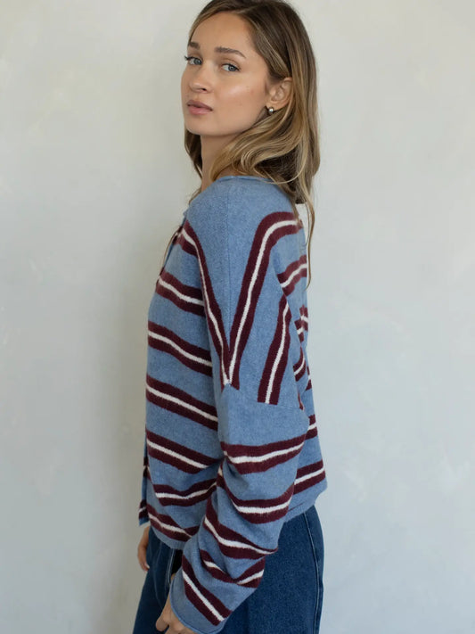 Varsity Stripe Piper Cardigan - Dusty Blue