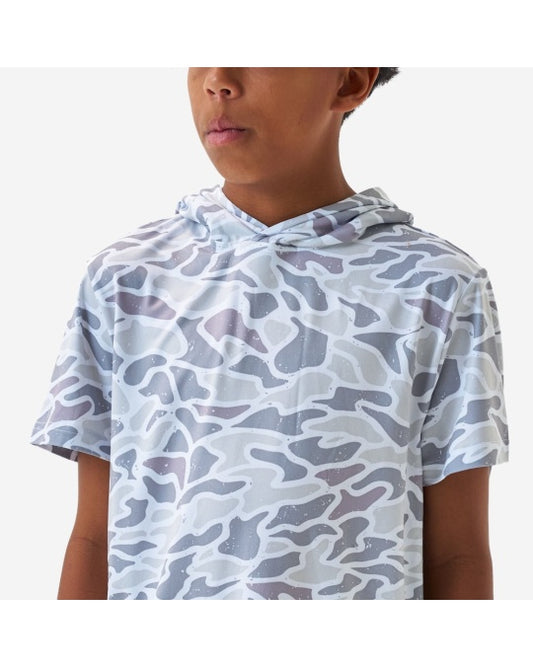 Boys Burlebo Short Sleeve Performance Hoodie - White Camo