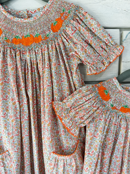 Fall Floral Smocked Pumpkins Bishop Long Bubble