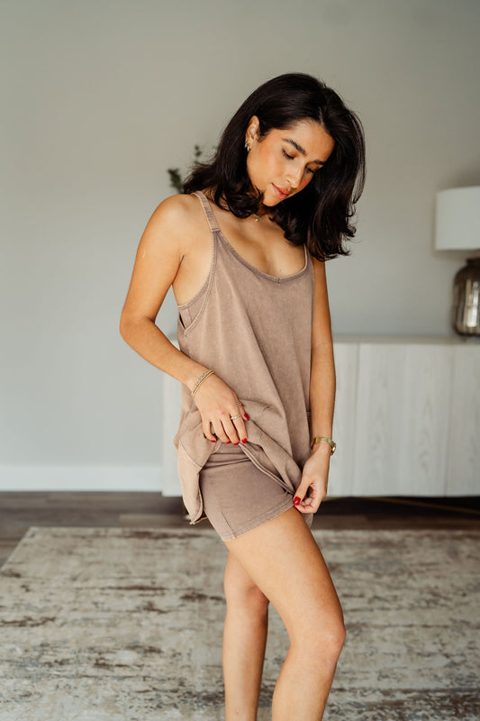 Sold outMineral Washed Mocha Romper Dress