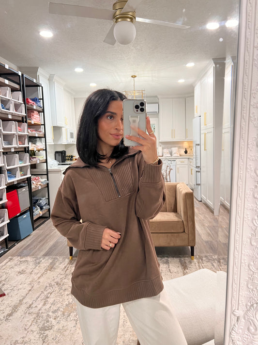 Sold outCoffee Ribbed Mock Neck Quarter Zip