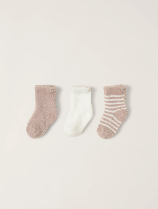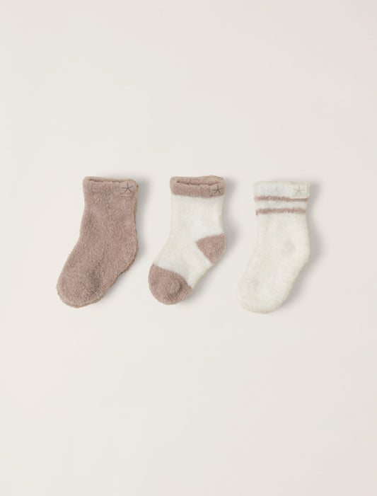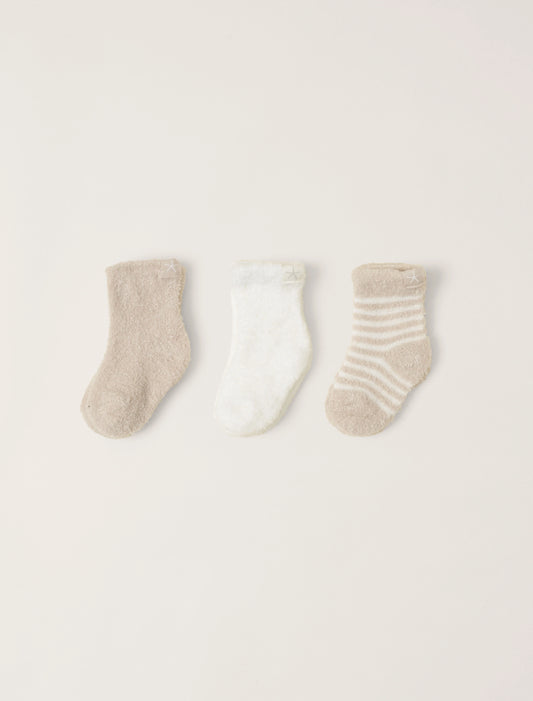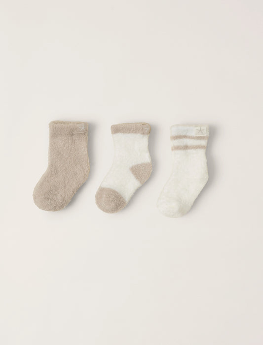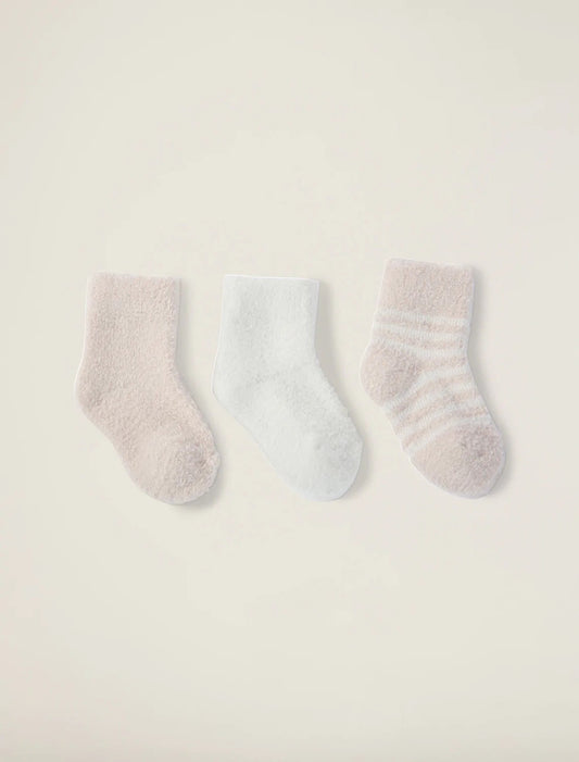 Barefoot Dreams CozyChic Three Pack Infant Sock Set - Stone/Pearl
