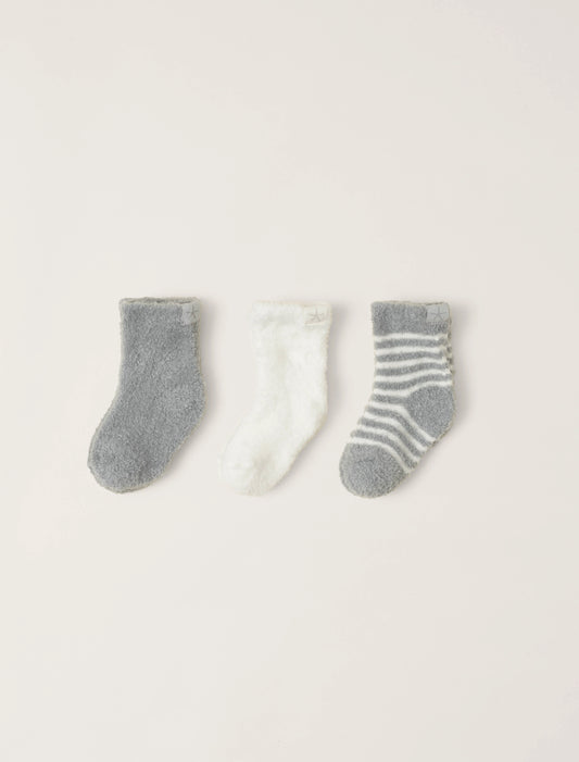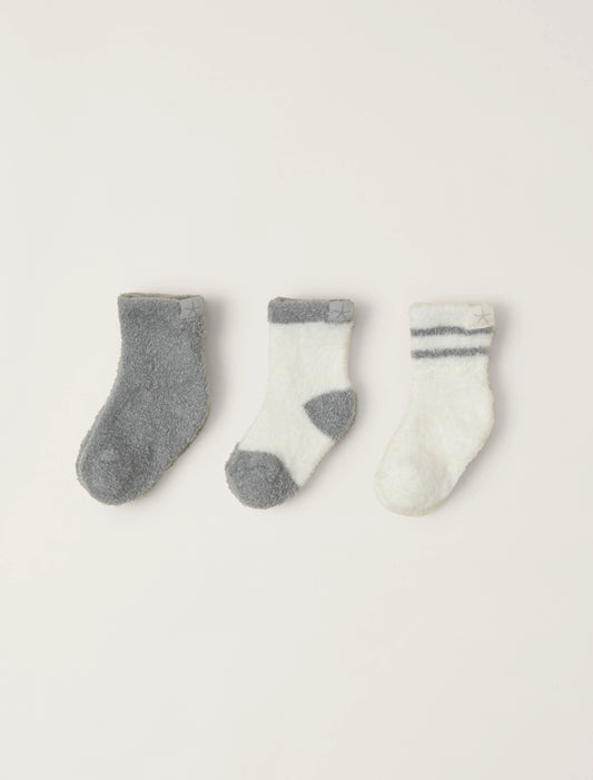 Barefoot Dreams CozyChic Three Pack Infant Sock Set - Moonbeam/Pearl