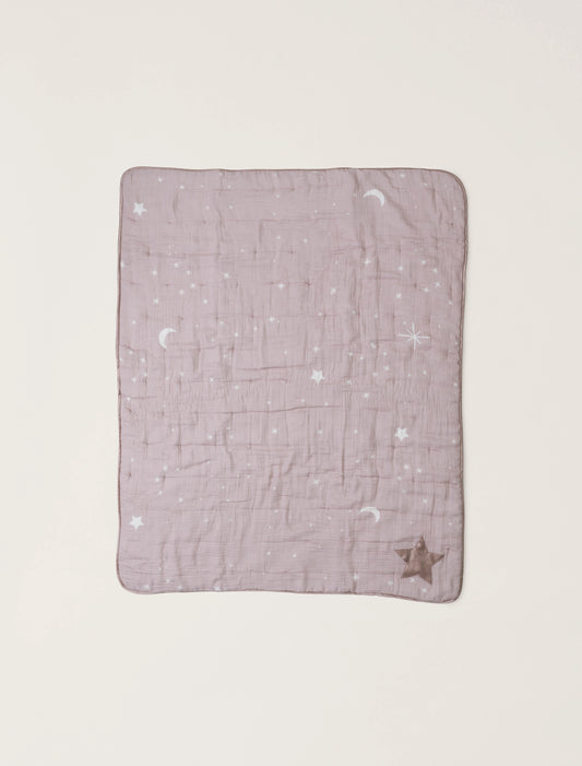 Organic Cotton Double Cloth Starry Night Toddler Quilt - Faded Rose