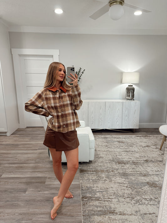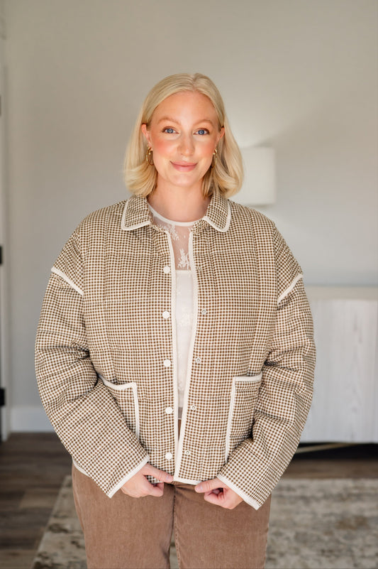 Gingham Piping Jacket - Mocha/Cream