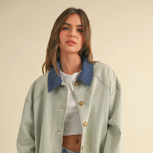 Sold outCorduroy Collar Denim Utility Jacket