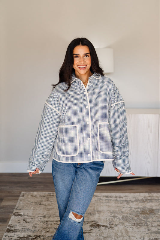 Gingham Piping Jacket - Deep Blue/Cream