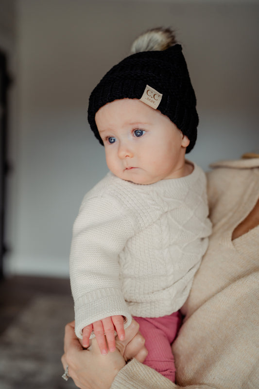C.C Baby Fur Pom Beanie - Black