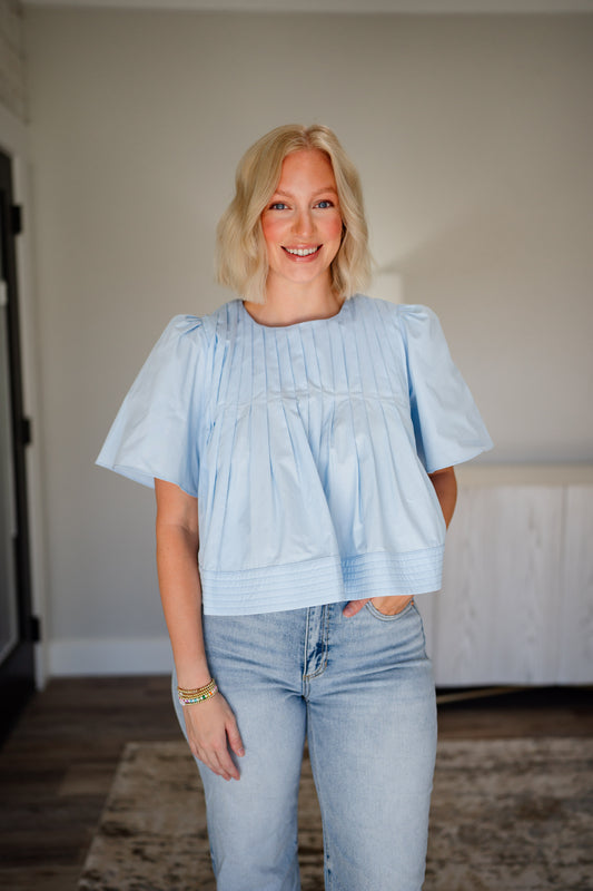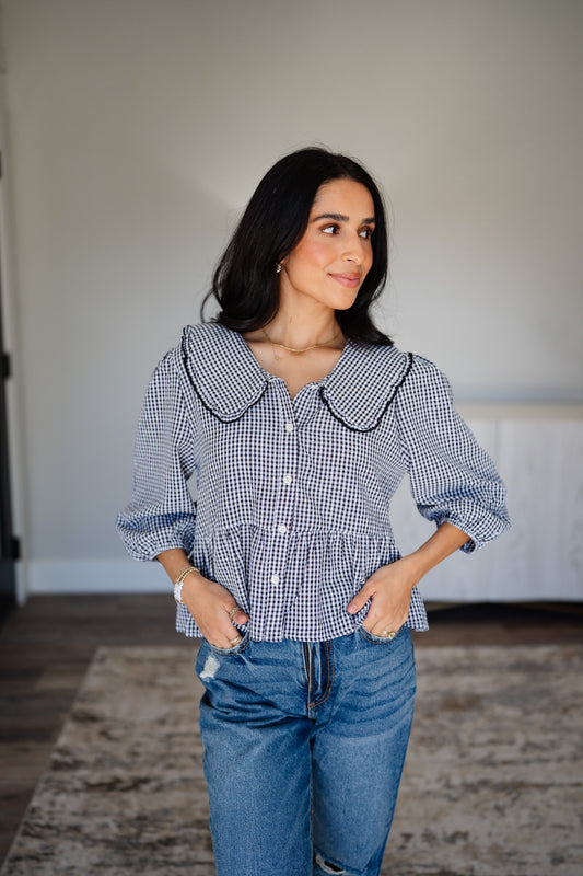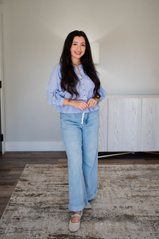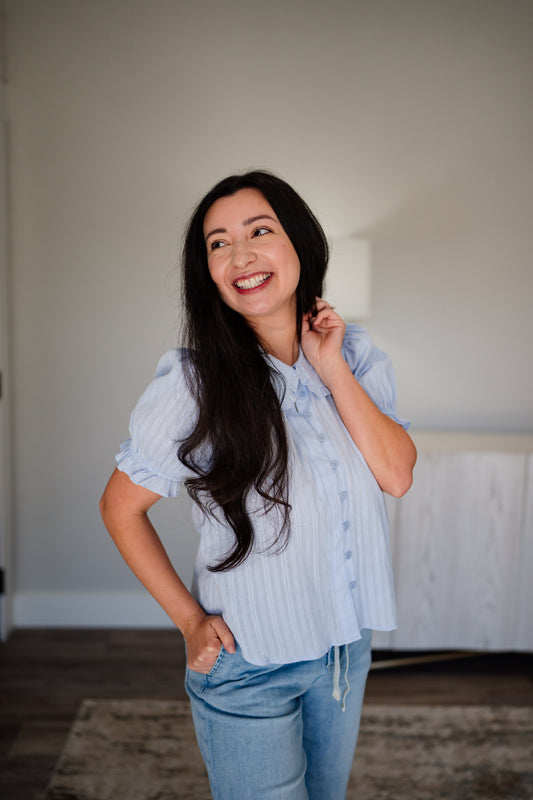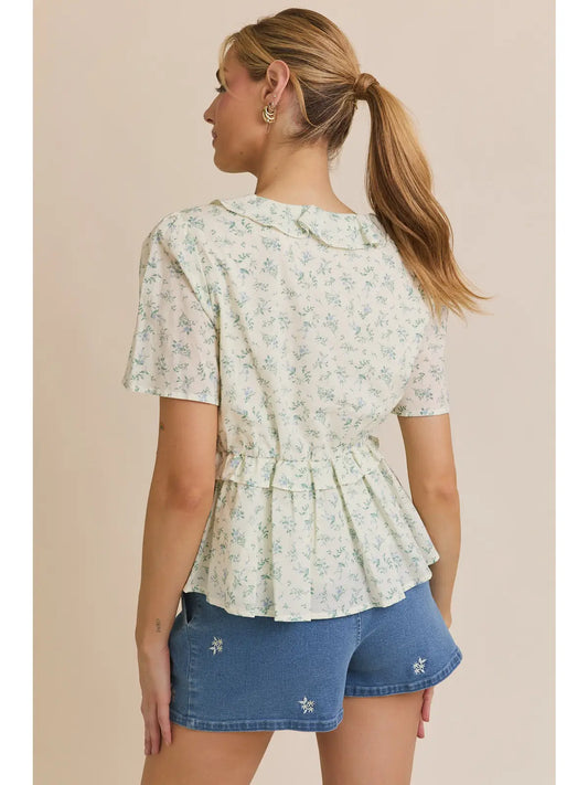 Floral Embroidered Balloon Sleeve Button Down Shirt