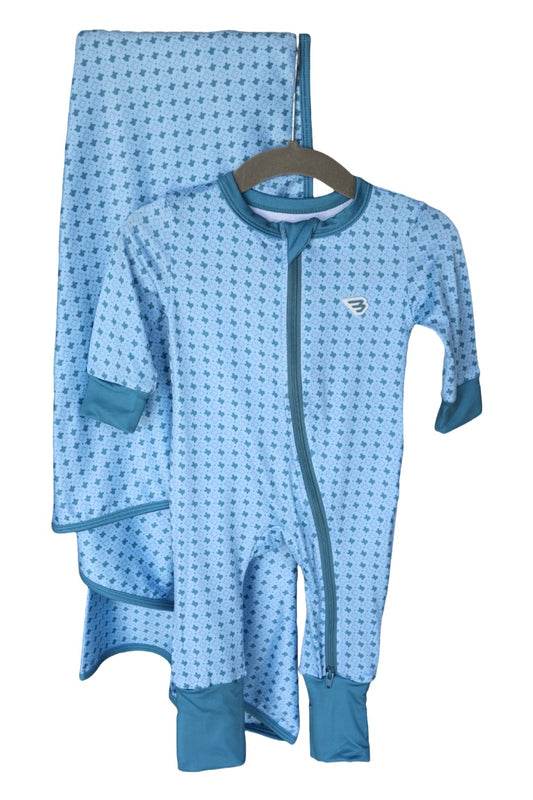Angel Dear Blue Vintage Christmas Trees Footie