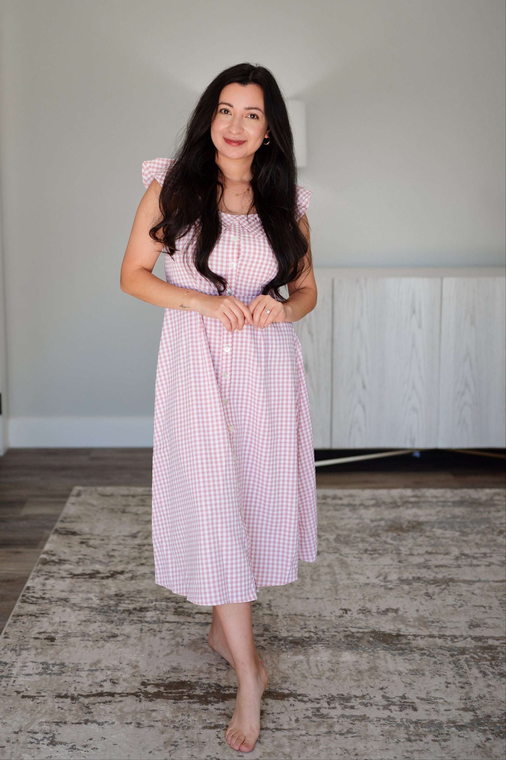 - Ashley is 5’3’’ and wears a small top and size (2)26 in pants. She is shown wearing a small in the dress.