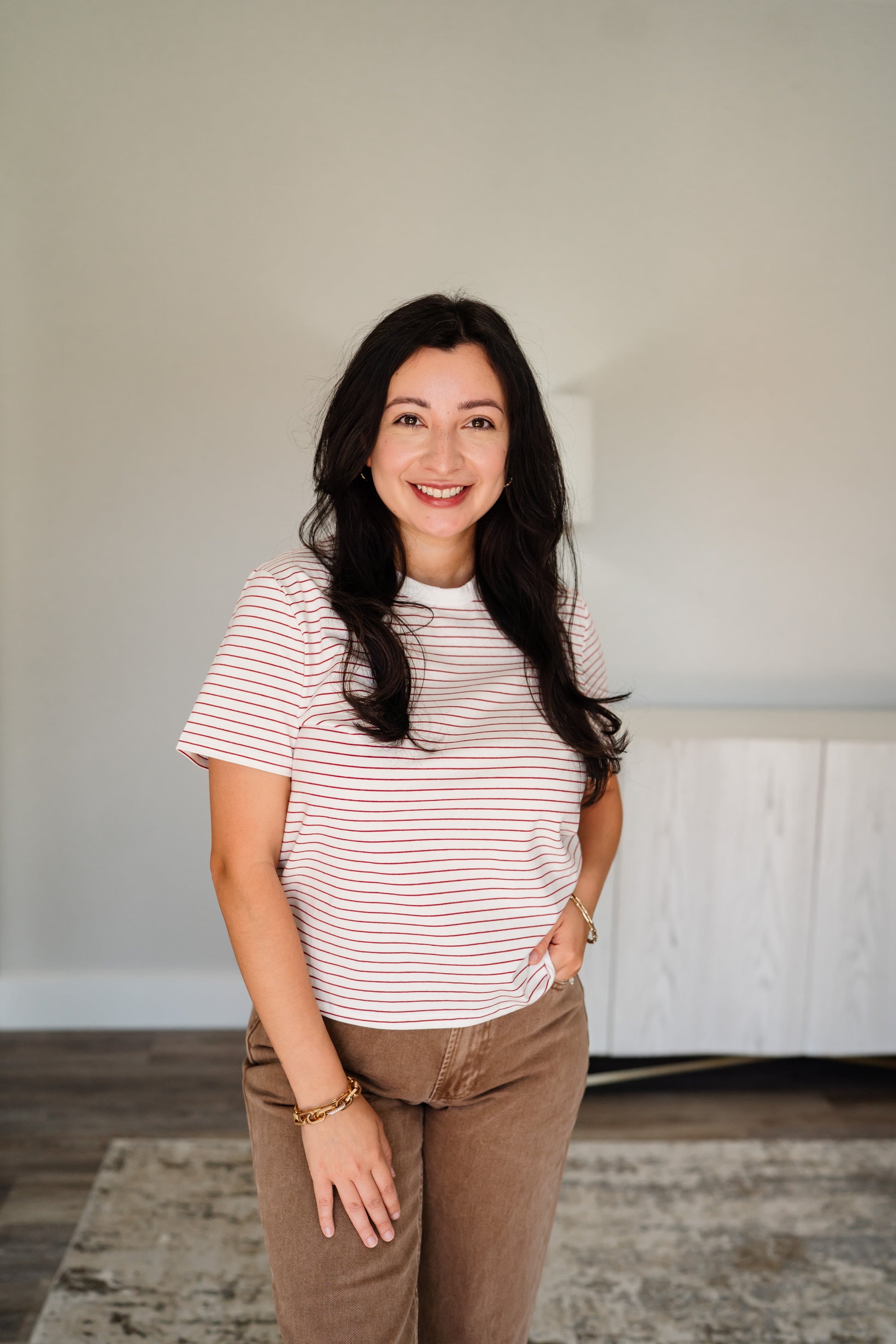 Ivory/Red Pinstriped Tee