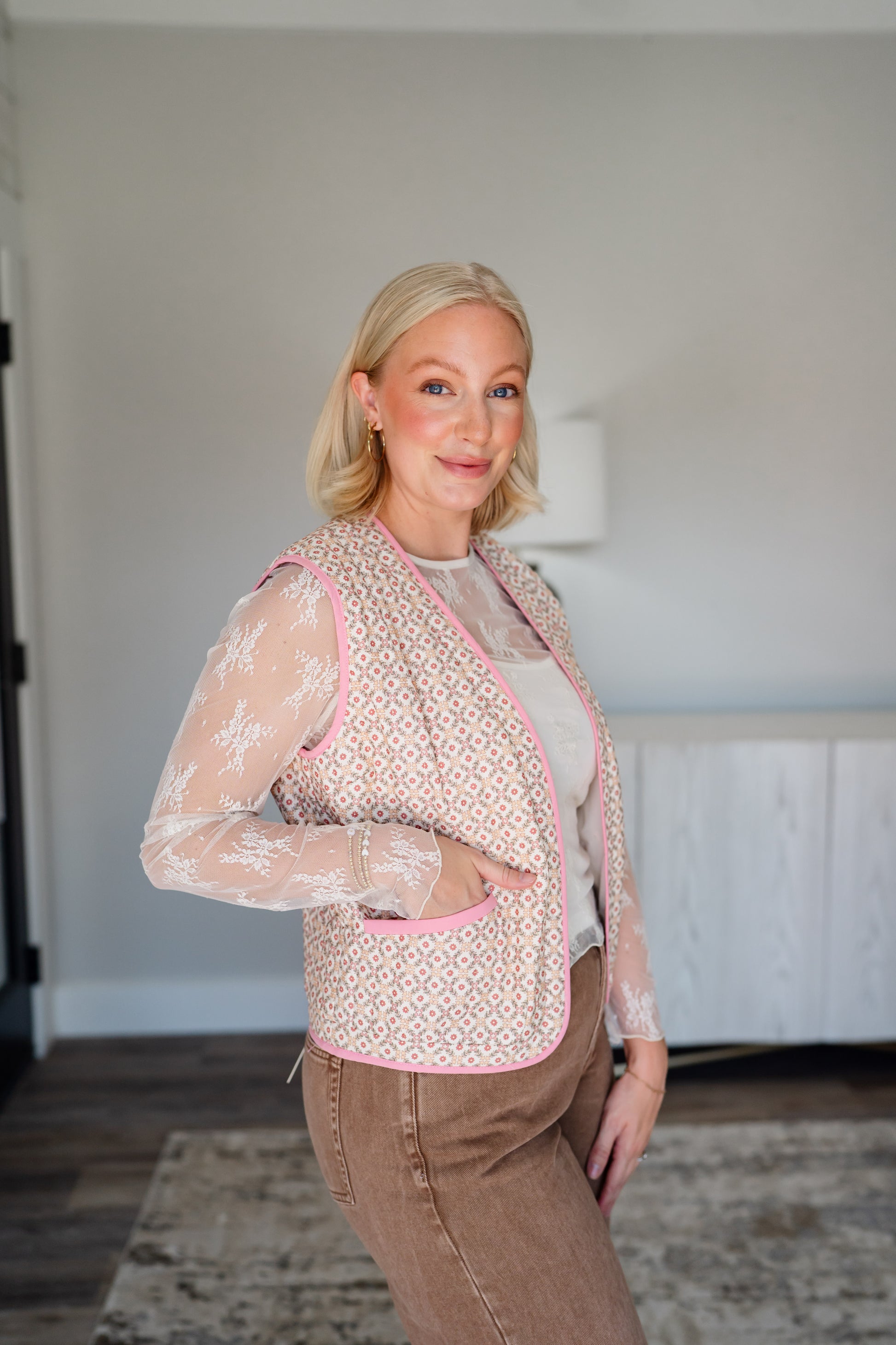 Mosaic Print Contrast Vest