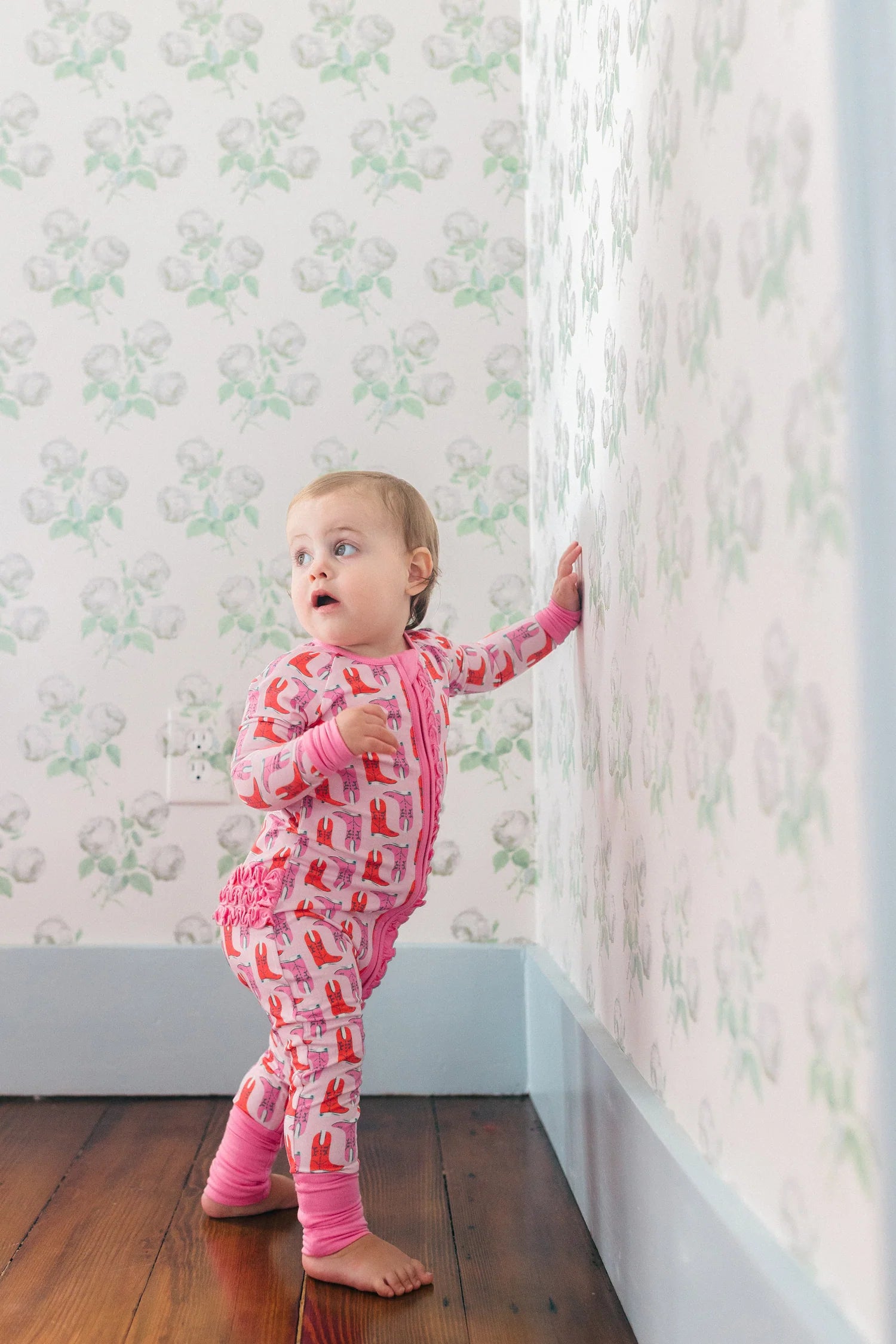 Snuggle up with your little cowgirls this rodeo season in these adorable pink boots bamboo pajamas!